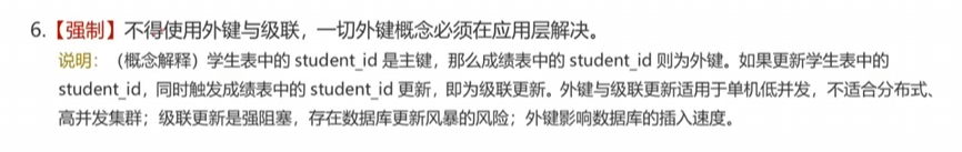 在以前學(xué)習(xí)數(shù)據(jù)相關(guān)知識(shí)的時(shí)候,有幸閱讀過阿里的數(shù)據(jù)庫開發(fā)規(guī)范手冊,里面提到一條強(qiáng)制等級(jí)的規(guī)范:不得使用外鍵與級(jí)聯(lián),一切外鍵概念必須在應(yīng)用層解決。